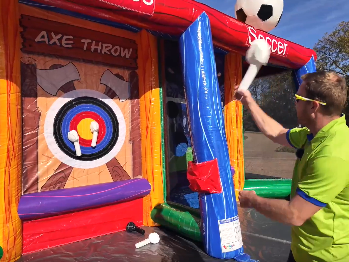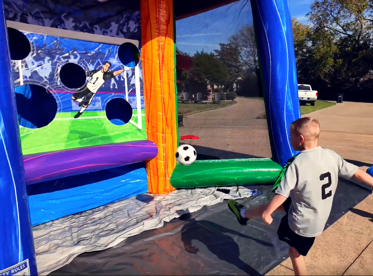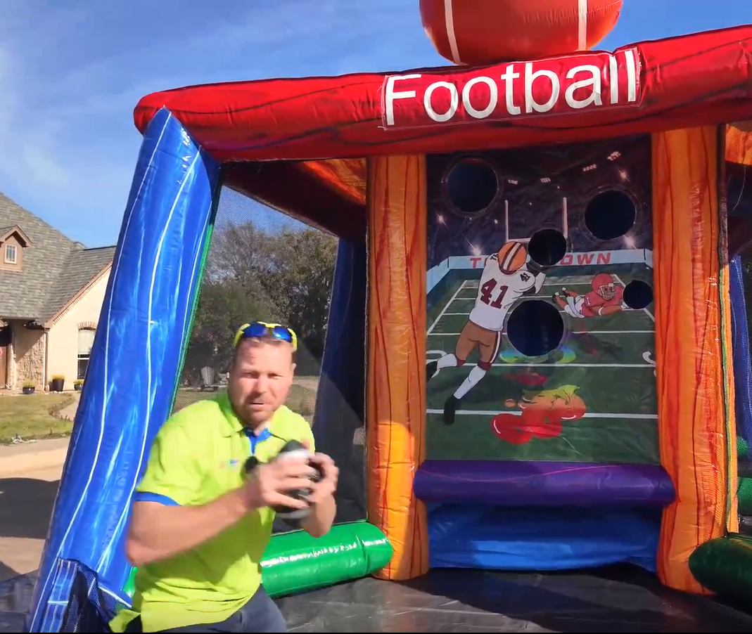 Up to six players can compete at once, making it a perfect fit for events of all sizes. Whether your guests are kicking goals, hitting targets, or going for a touchdown, everyone will find their favorite game inside this all-in-one inflatable experience.