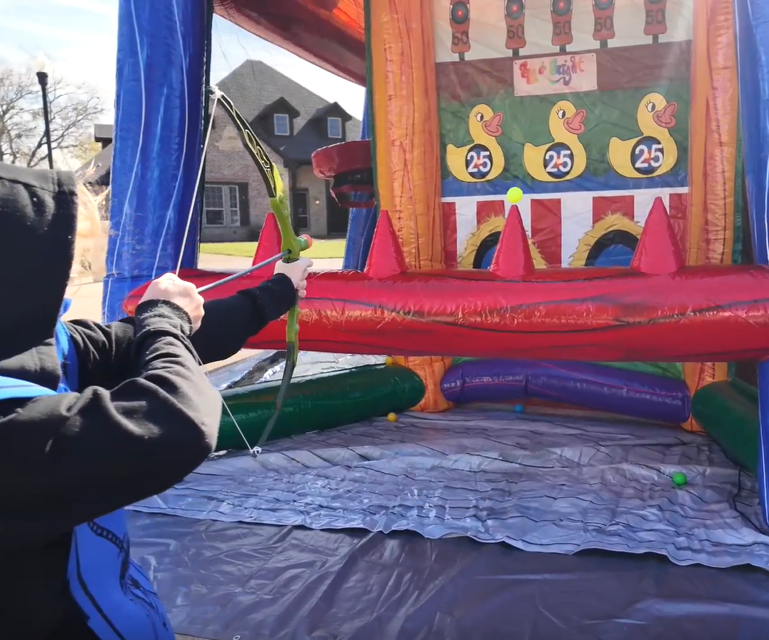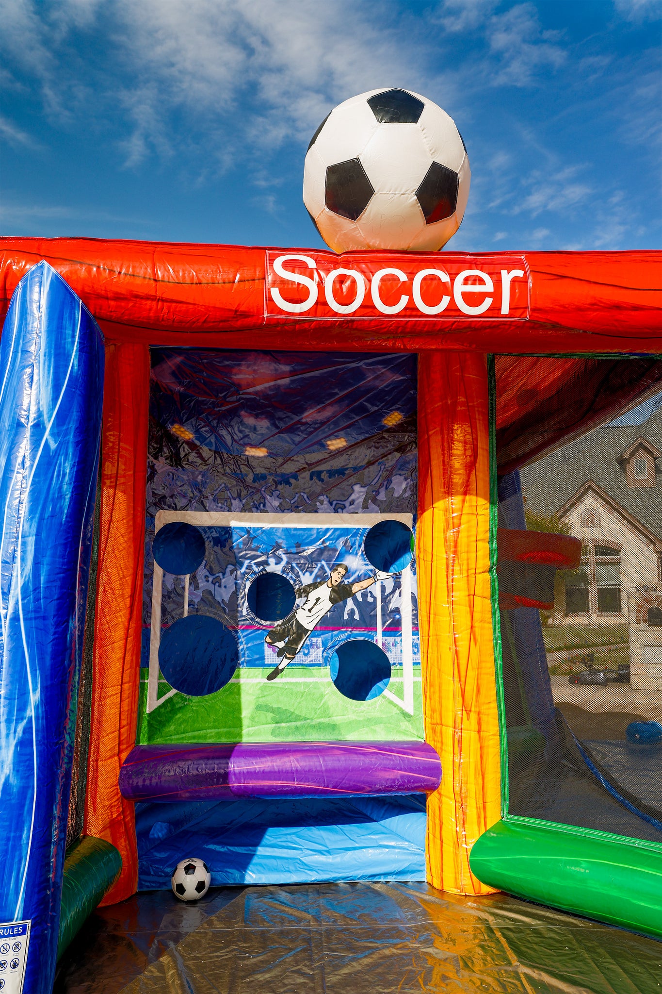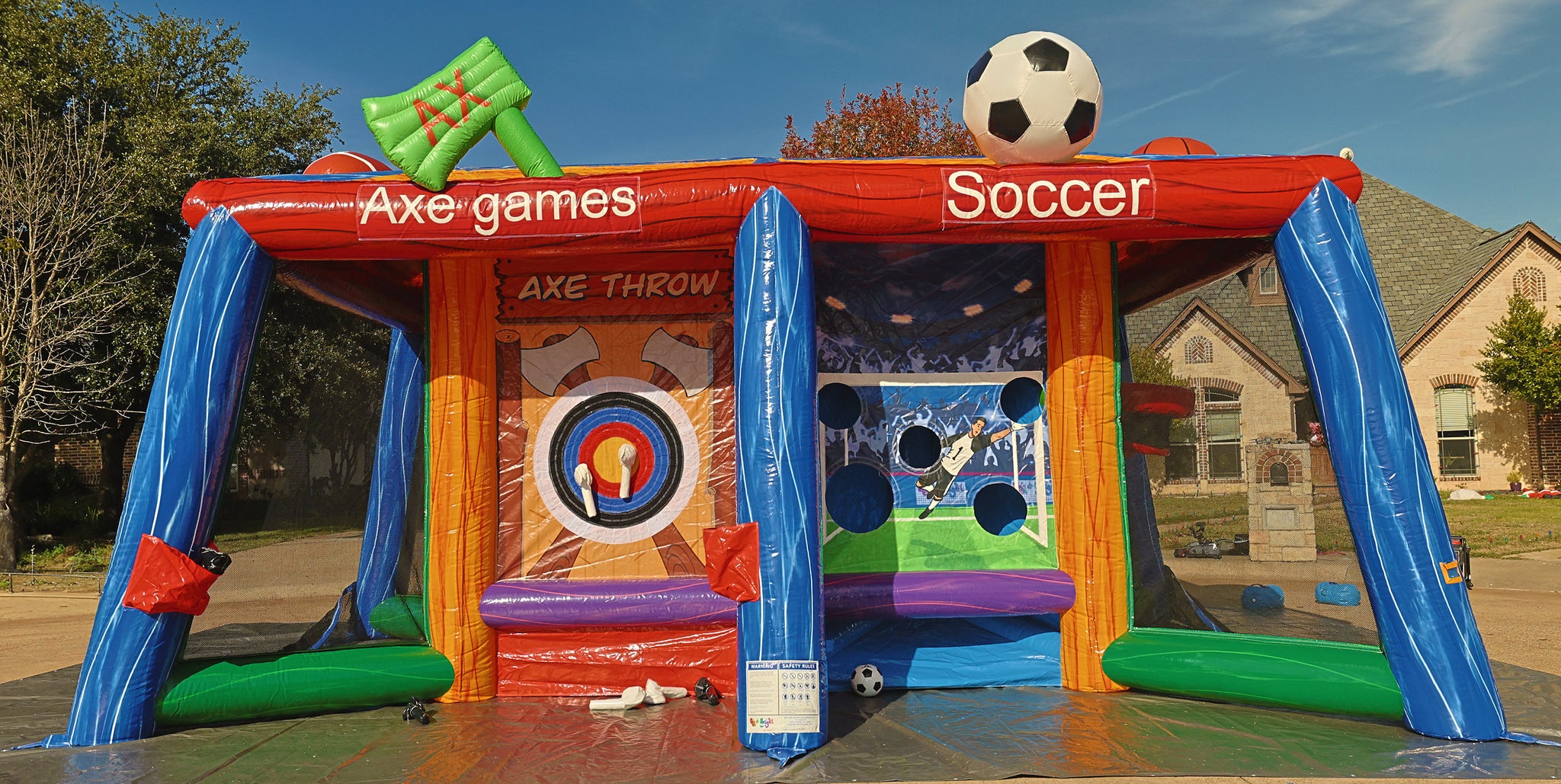 Up to six players can compete at once, making it a perfect fit for events of all sizes. Whether your guests are kicking goals, hitting targets, or going for a touchdown, everyone will find their favorite game inside this all-in-one inflatable experience.